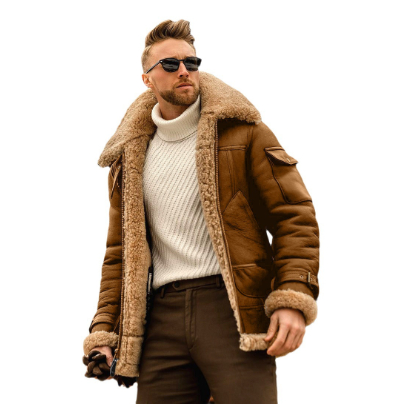 Men's Faux Fur-lined Thick Imitation Leather Jacket
